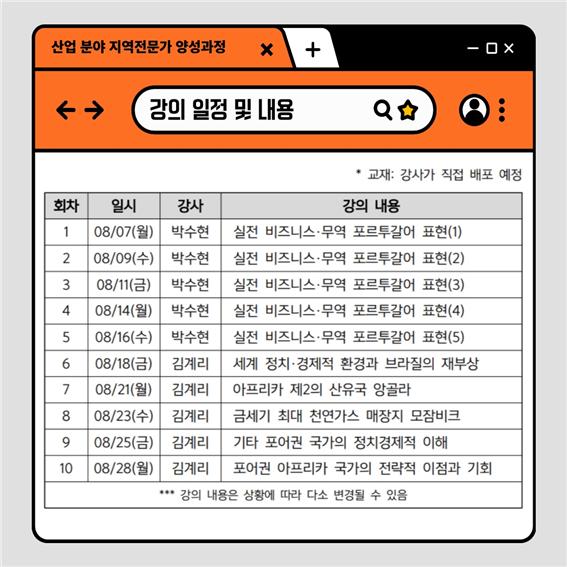 이번 강좌는 "산업 분야 지역전문가 양성과정: 포르투갈어권 국가로의 전략적 접근"입니다.